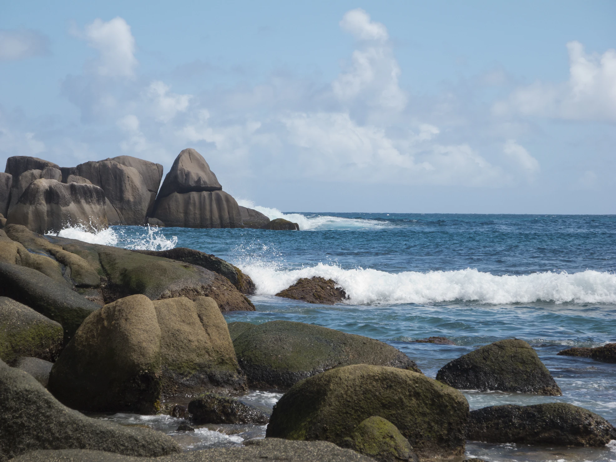 Because there is no offshore coral reef, waves arrive here with considerable power, particularly during the south-east trade wind season (May to September). This makes Anse Intendance a rare surfing spot in the Seychelles, but it also means swimming can be genuinely dangerous during those months. Outside trade wind season (October to April), the water calms considerably.
